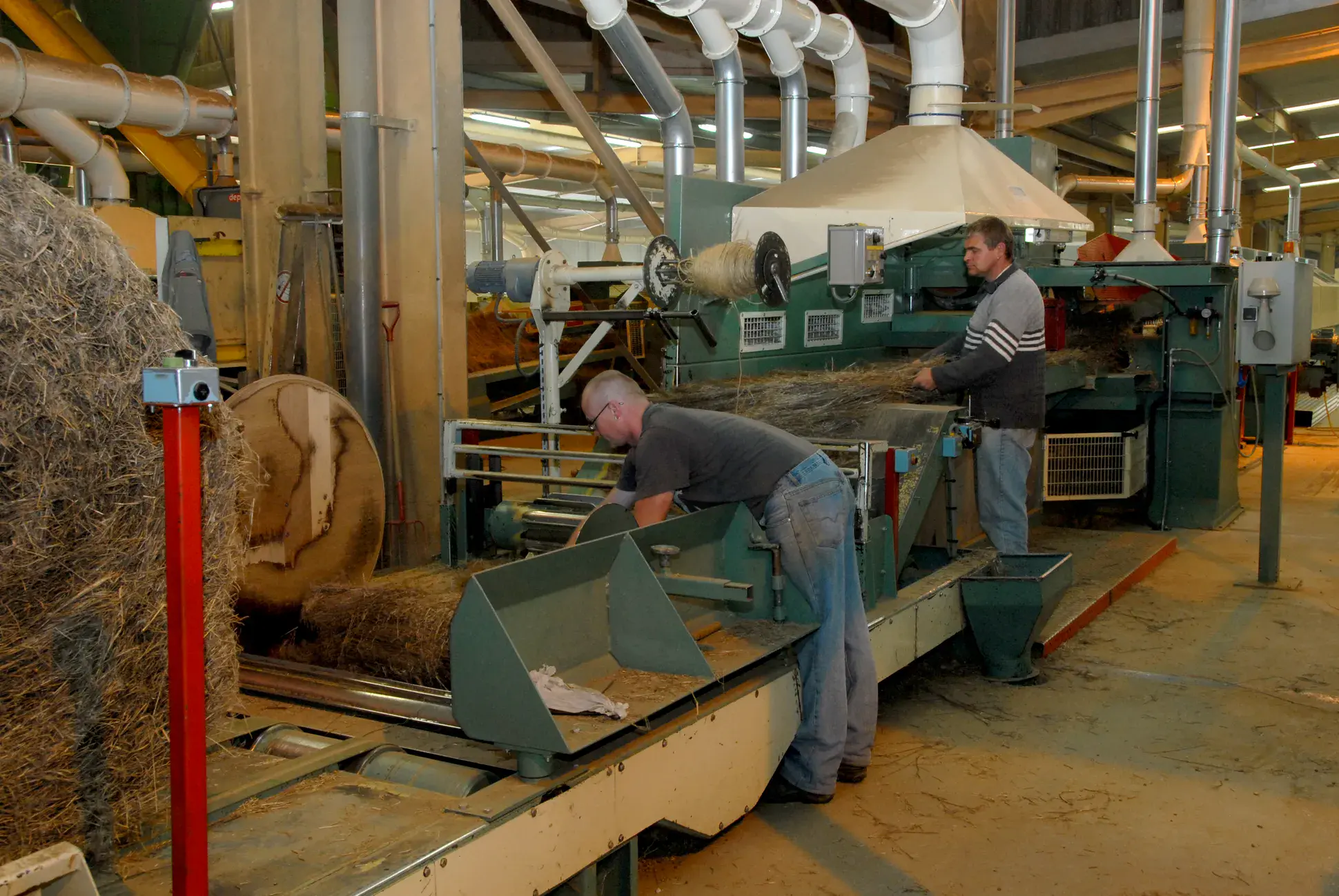 Transformer la paille de lin pour en extraire la fibre textile. Le teillage permet de séparer les fibres longues, les fibres courtes, les sous-produits et les co-produits.